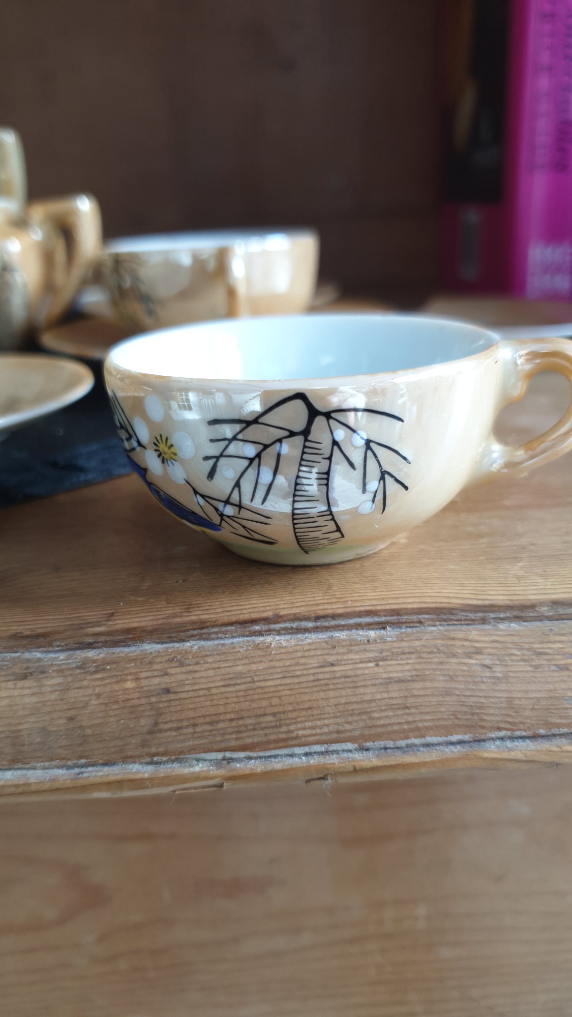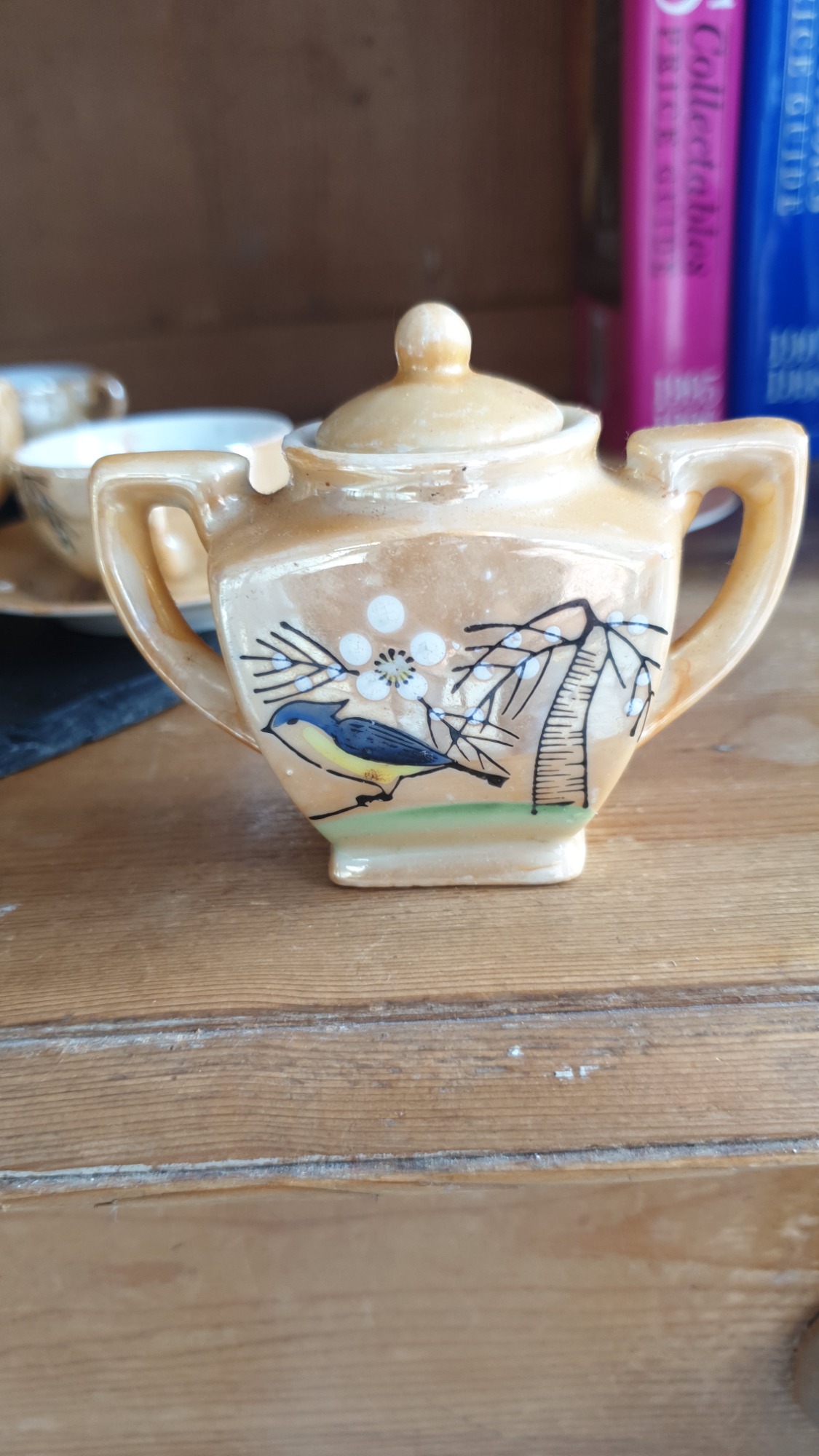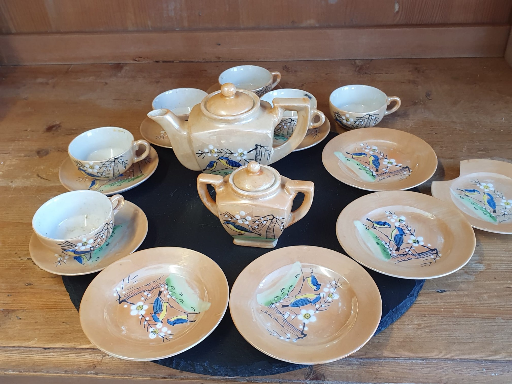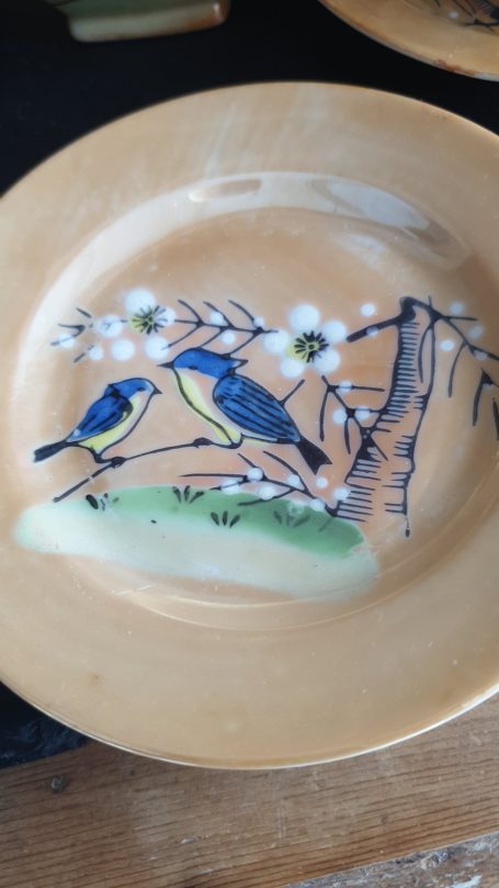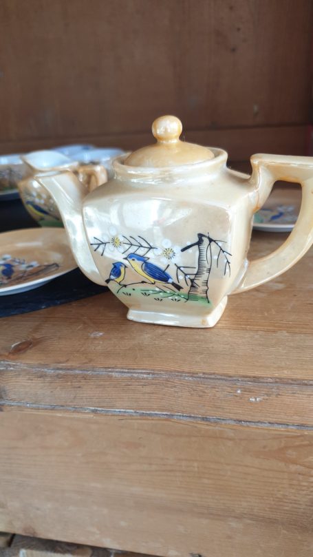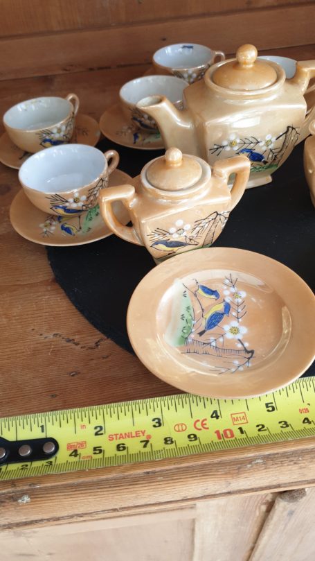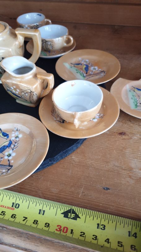 Japenese Vintage Children's Tea Set. Lustre Ware with hand-painted bird and floral design. Produced from 1920's to 1950's