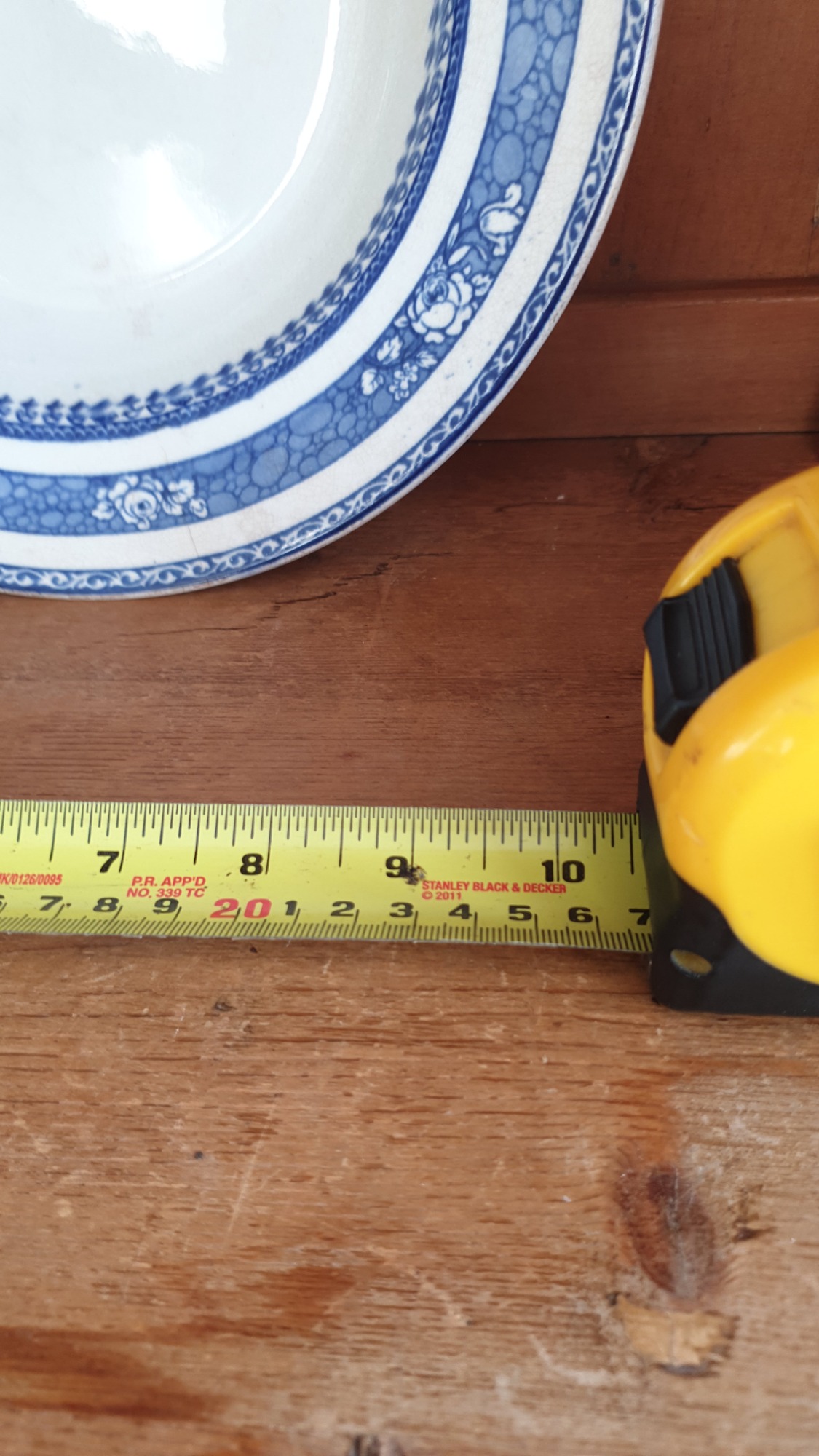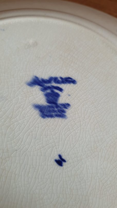 The plate is made of ceramic and was produced between 1920 and 1939 (Art Deco period) in Burslem, England.