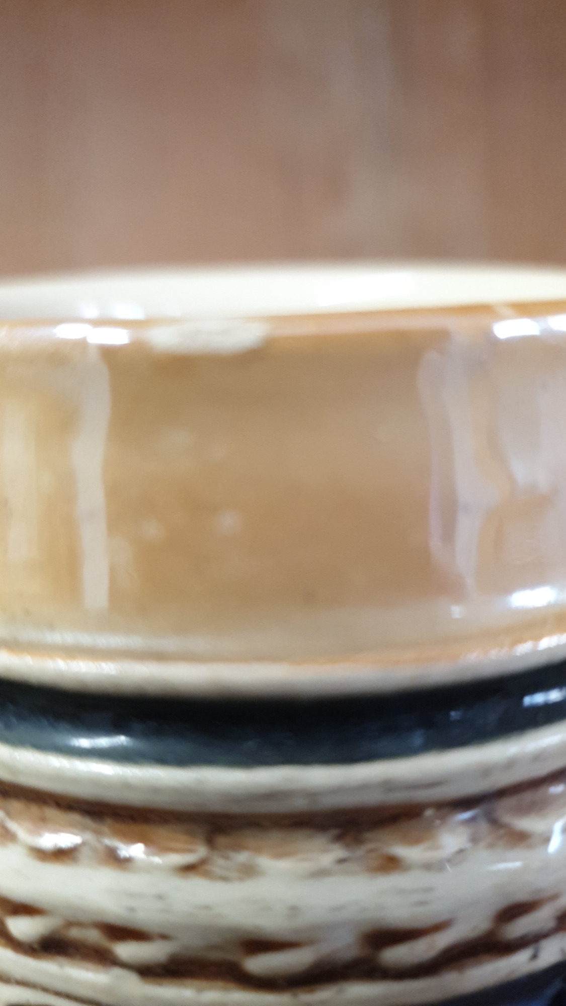 It is a handcrafted and hand-painted ceramic piece.