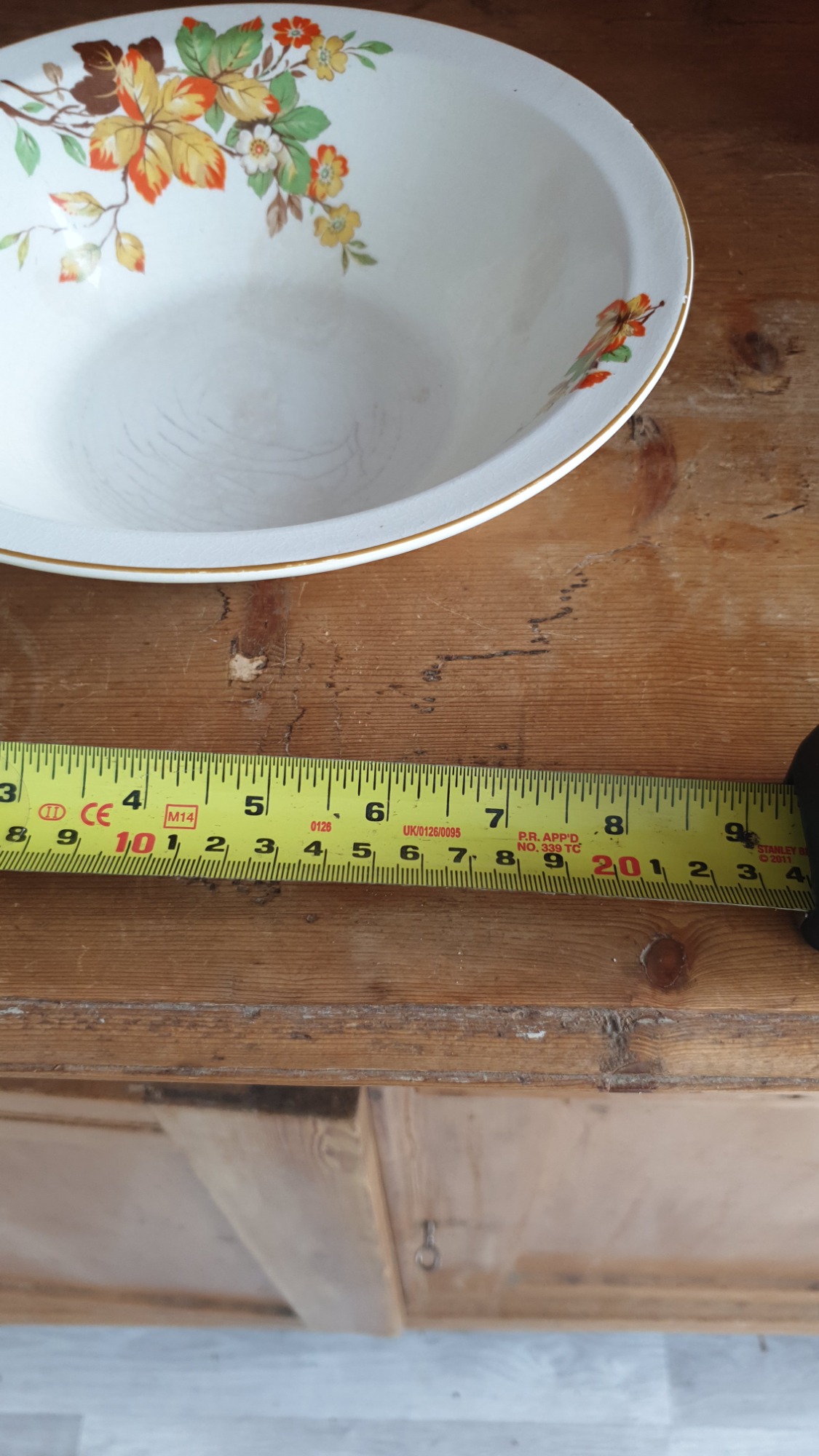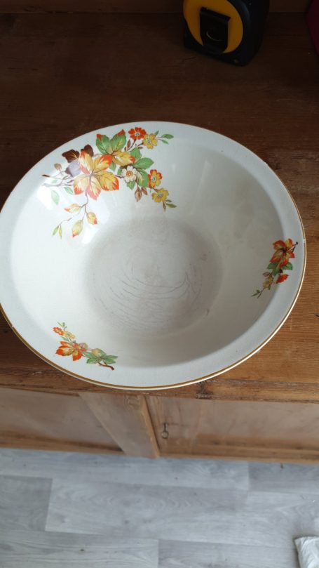 A vintage ceramic wash bowl featuring a floral pattern, by Burleigh Ware.